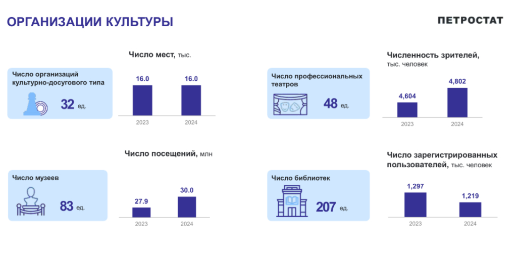 В школах обучаются 608,3 тыс. человек, которых ведут 35,8 тыс. учителей. Студенты высших учебных заведений насчитывают 342,4 тыс., из них 260,8 тыс. очной формы обучения, 59,2 тыс. заочной и 22,3 тыс. очно-заочной. В 2024 году приняли 101,5 тыс. студентов и выпустили 66,5 тыс. специалистов. Диплом бакалавра получили 62% выпускников, магистра — 25%, специалиста — 13%. Музеи посетили 30 млн человек, театры собрали 4,8 млн зрителей, а библиотеки зарегистрировали 1,2 млн пользователей.