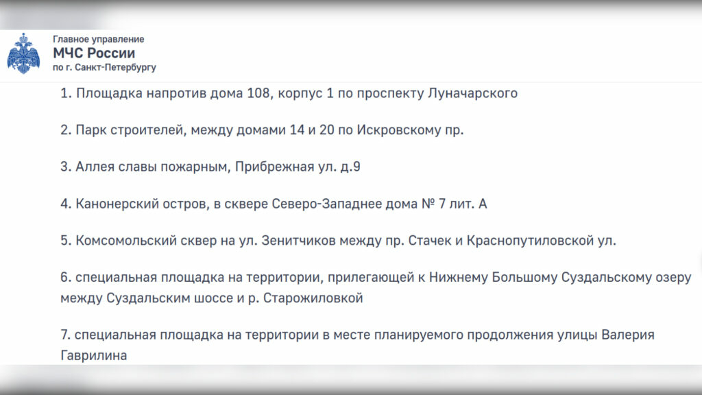 Интересно, что некоторые места не только подходят для безопасного запуска, но и оказались «яркими» с точки зрения топонимики. Например, жители Невского района могут отправиться на Искровский проспект, где находится Парк строителей с большим открытым пространством. В Купчино можно воспользоваться Сквером Героев-Пожарных, а в Рыбацком между двумя полосами Прибрежной улицы разместилась Аллея славы пожарных.