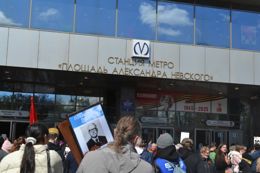 По завершении парада жители и гости города направились на площадь Александра Невского, где начался марш «Бессмертный полк». Тысячи людей вышли на улицы, чтобы почтить память своих предков и рассказать об их подвигах. Участники шествия прошли через рамки безопасности, установленные напротив Александро-Невской лавры, и двинулись по Невскому проспекту к Дворцовой площади.