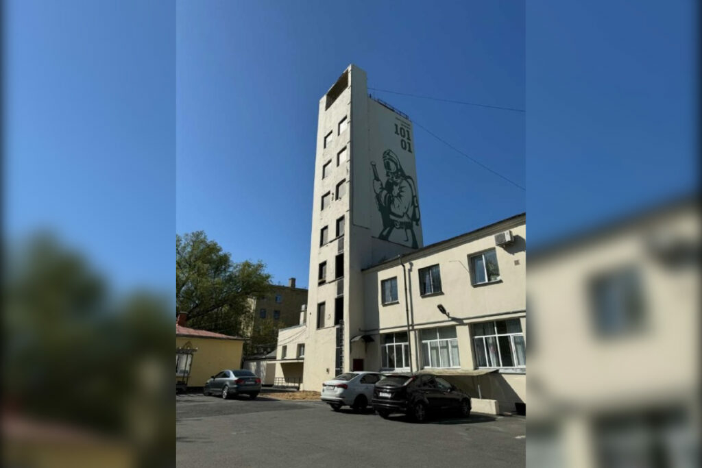 Третьим зданием стала пожарная часть, построенная в авангарде в 1930-е в соответствии с техническими требованиями, актуальными для тех лет. Фасад оформлен в конструктивизме, а пластика строится на игре горизонтальных и вертикальных объемов. Также к нему пристроена башня со смотровыми площадками. В наше время часть продолжает выполнять свои функции.