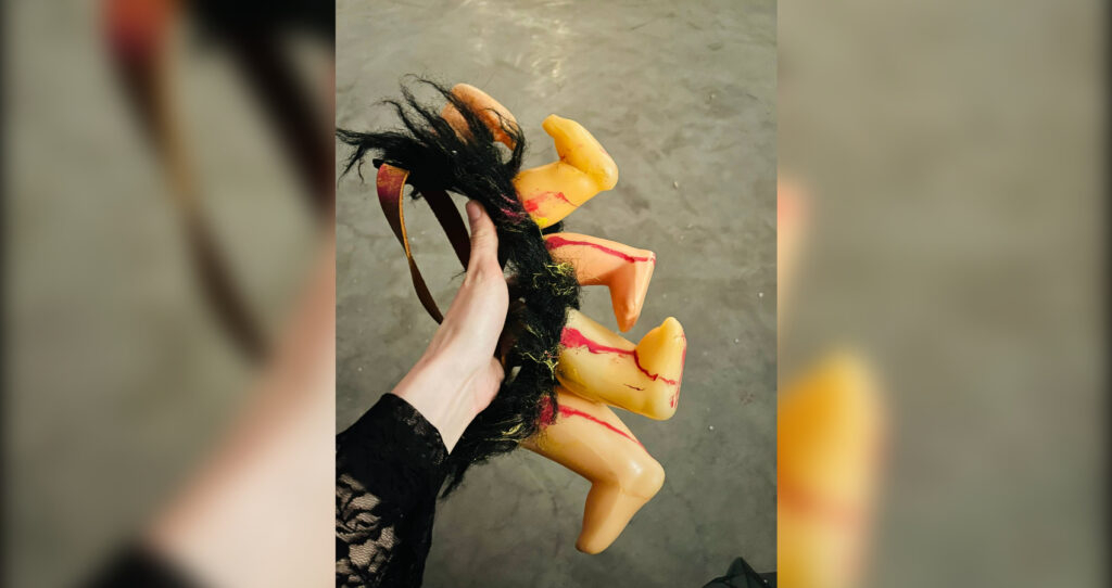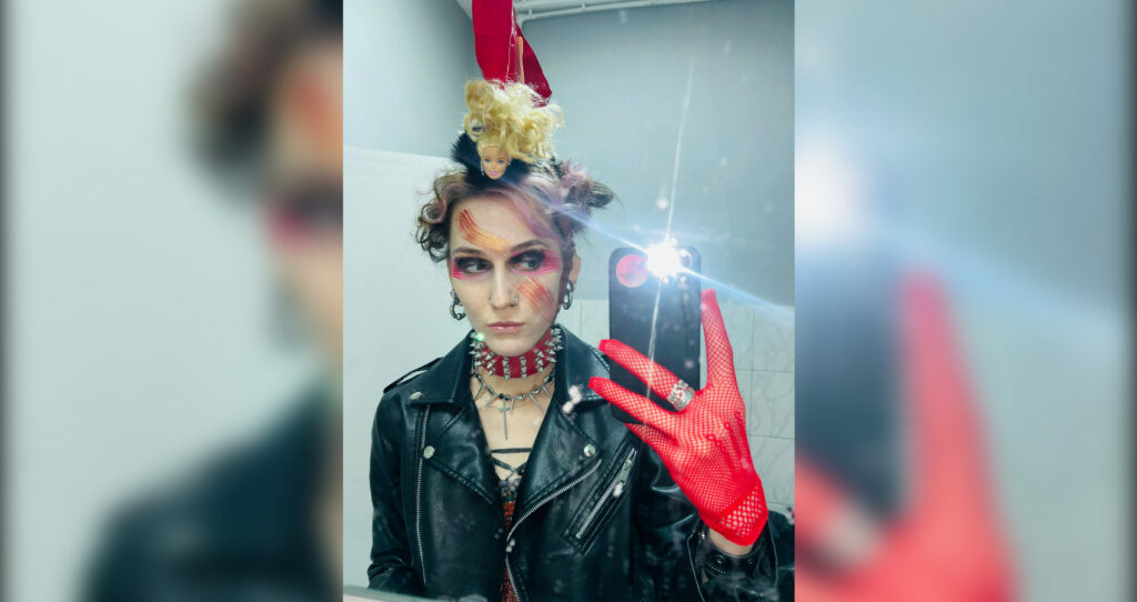 Одним образом не ограничились: позже девушку превратили в фанатку, пришедшую на концерт КиШа. На голове появился «кокошник» — ирокез из цветной бумаги и голов кукол Barbie, а лицо разукрасили хаотичными мазками разноцветной краски, отдаленно напоминающими шрамы.